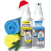 Especialmente para superficies mates (barnices mates y películas mates) en el hogar: CLEANHOME Matt CLEAN + Matt CARE SET para cocinas y muebles.